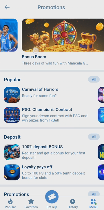 This kind of bonus may be received only with luck and consistency. Filipino users can join through the “Jackpot” section on 1xbet website and complete daily betting challenges to qualify.